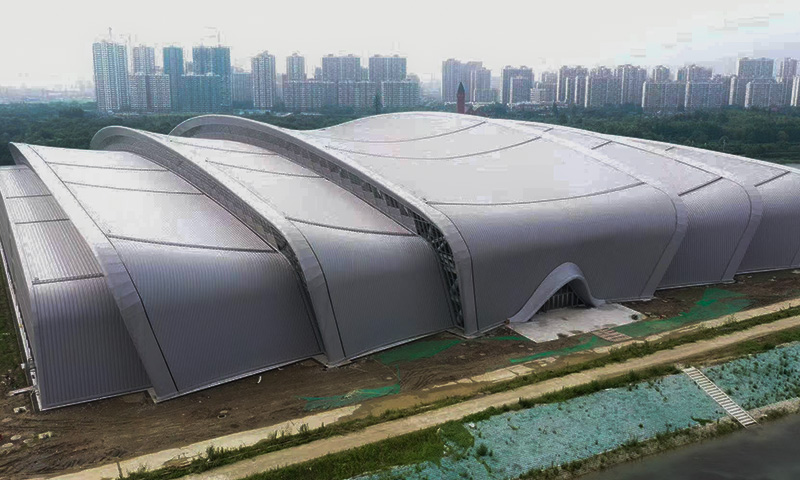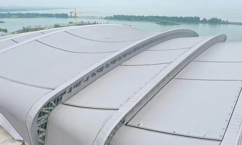 建筑面積:42800平米 工程地點(diǎn):江蘇省無錫市 工程范圍:鋁鎂錳金屬屋面